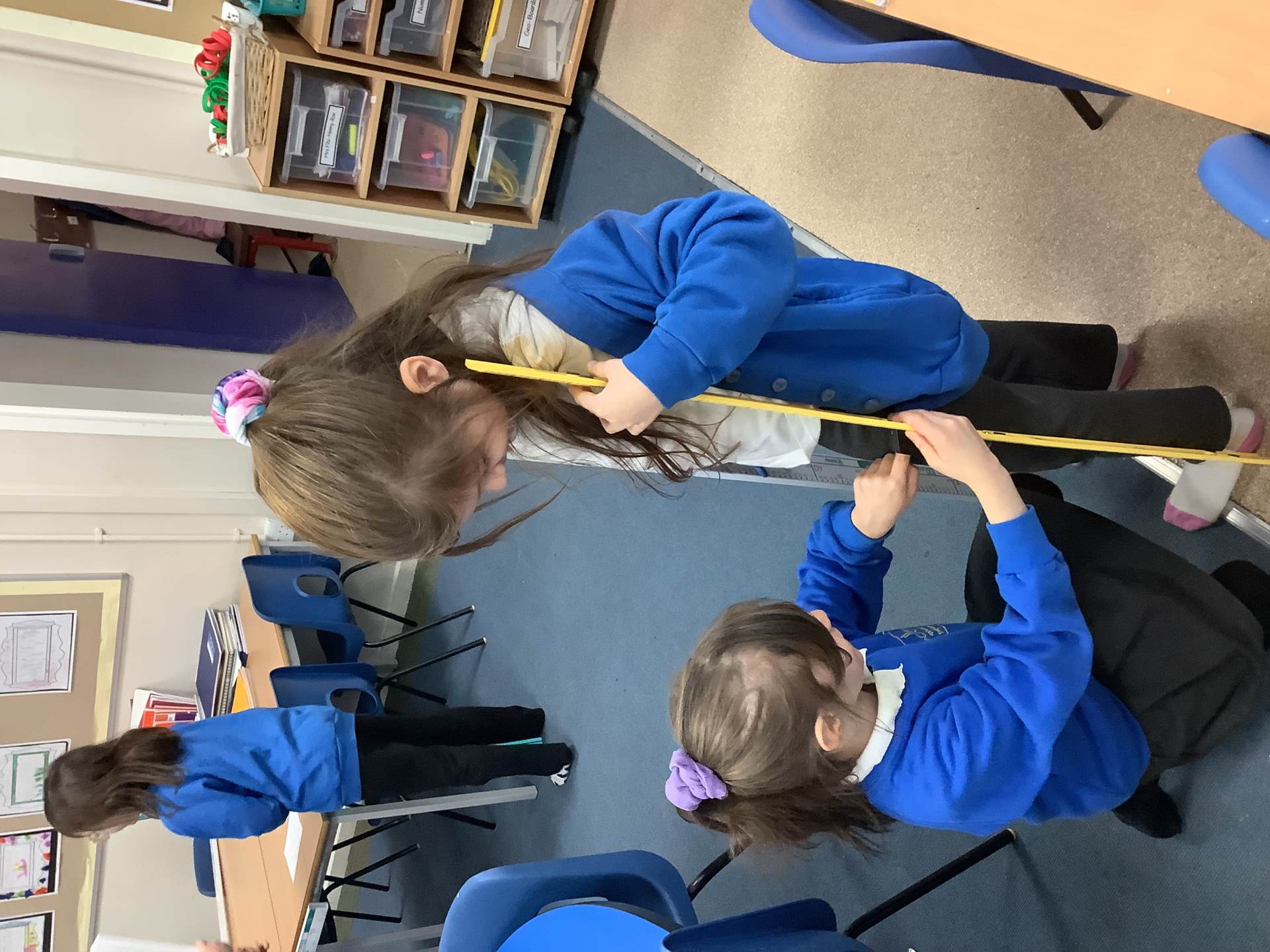 We have begun a new topic in Maths of length and height. The children have been using rulers to measure in m and cm. They had a great time exploring the classroom using and reading the scales. They then moved on to looking at comparing two objects using the correct vocabulary of taller, longer or shorter.