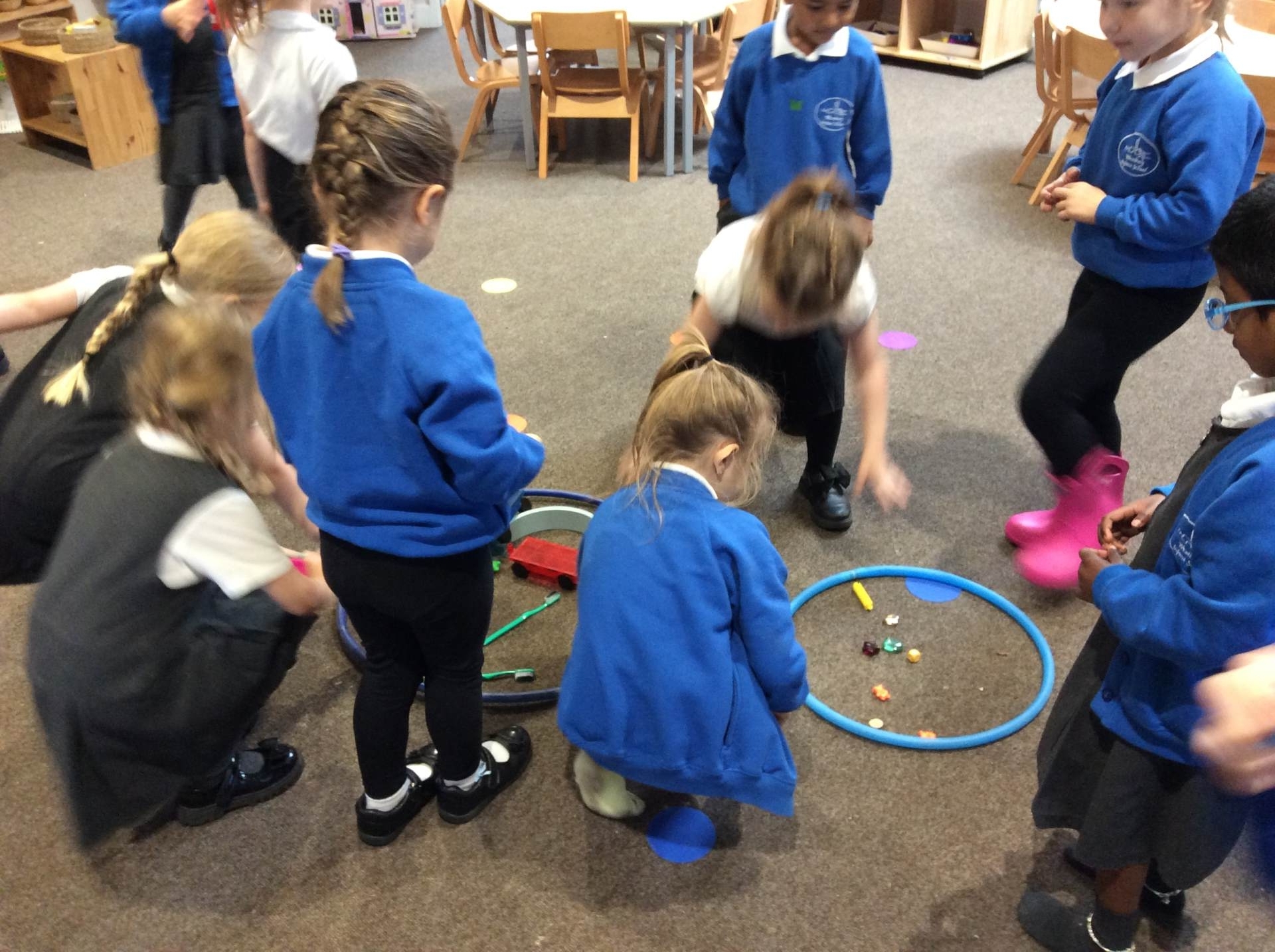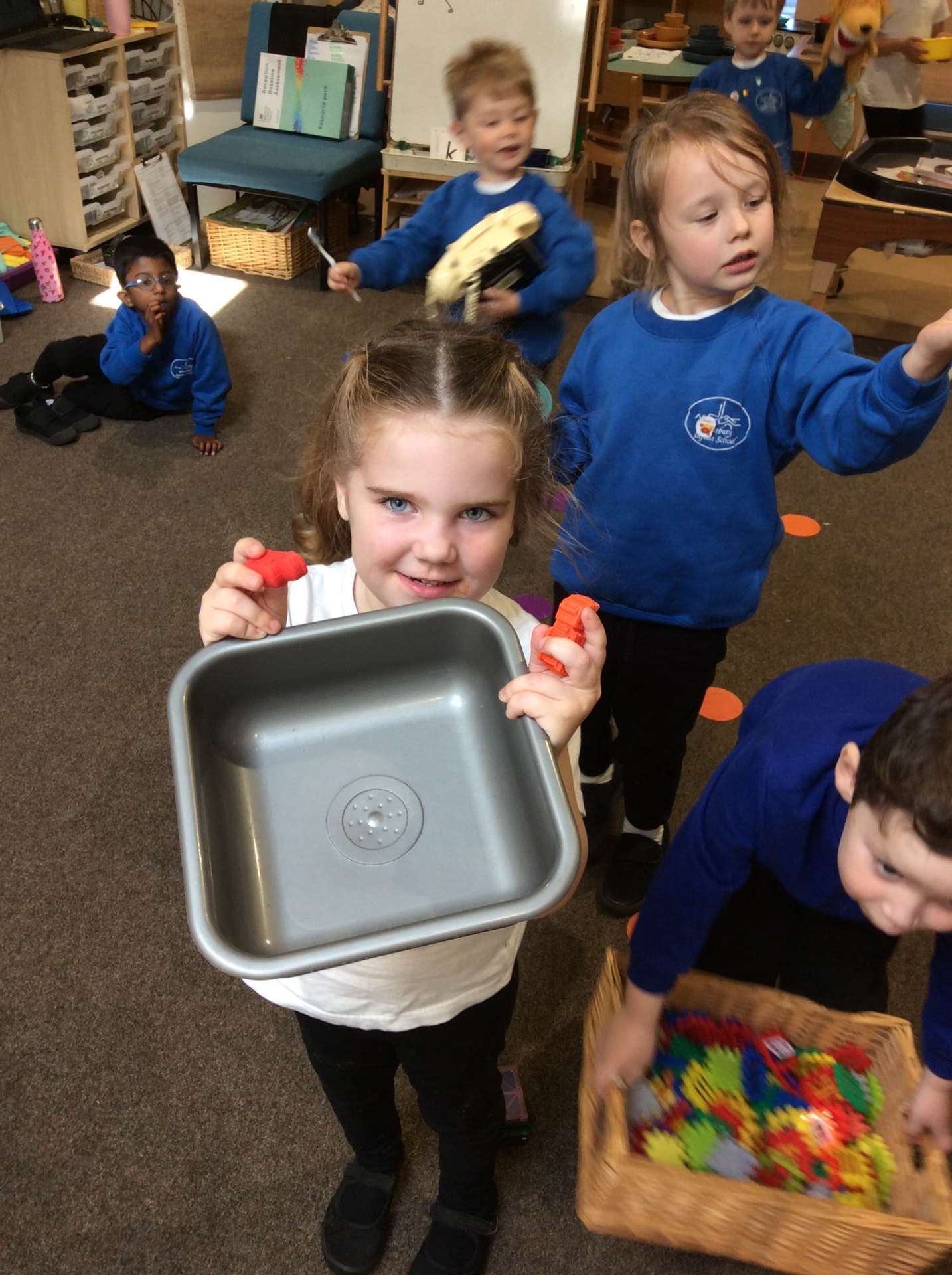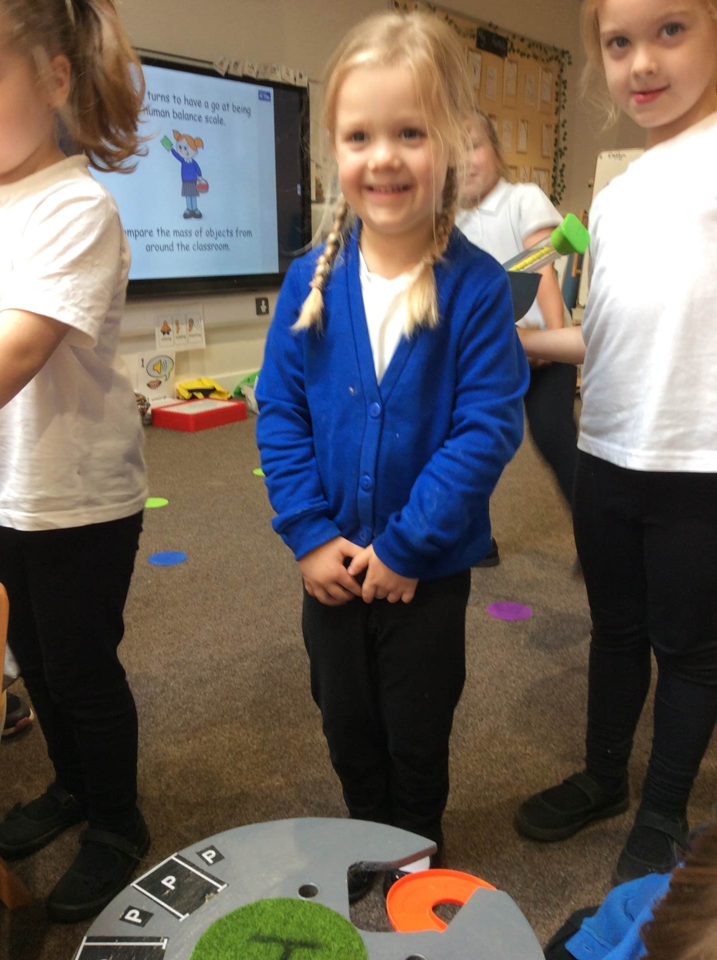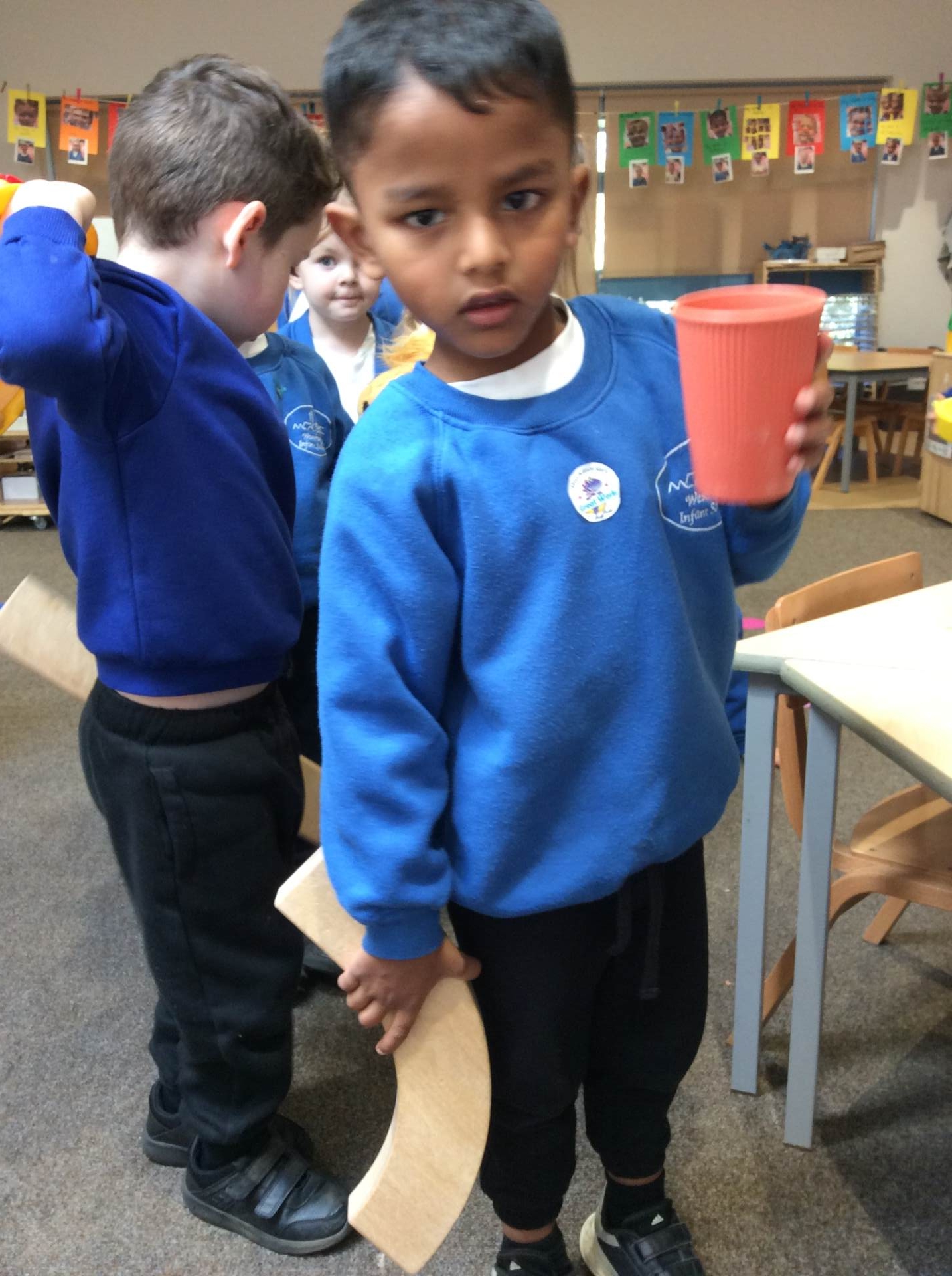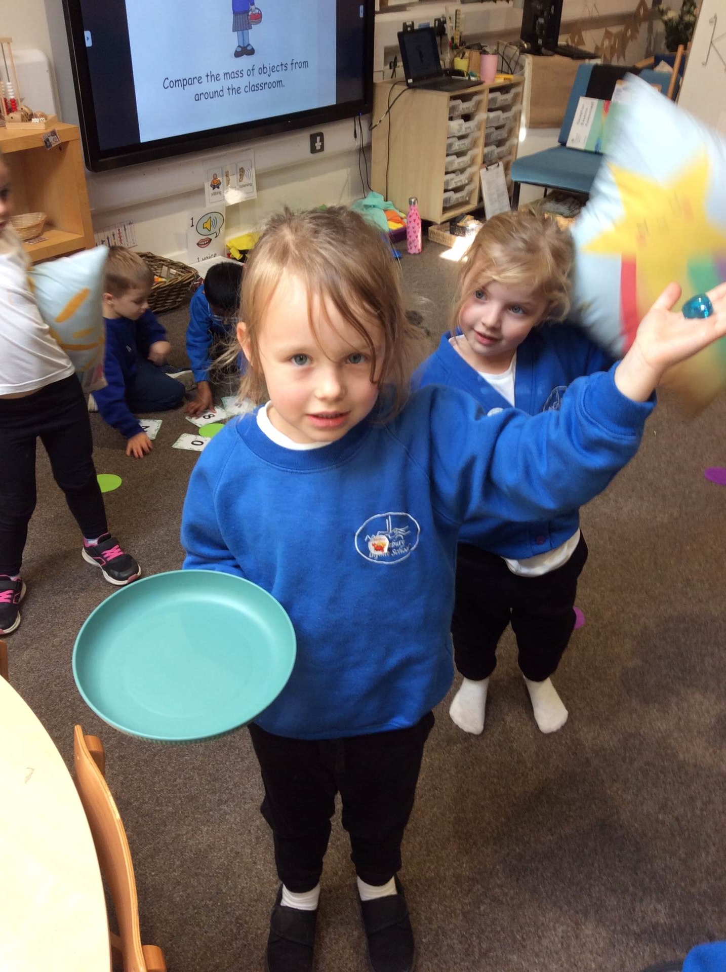 This week for squiggle whilst you wiggle we practised ‘the hump’ which will help when forming letters such as m, n, h, and r. We did this to the song ‘m bop’ by Hanson which was so much fun! In maths our focus has been comparing size and mass of different objects around the classroom. We chose objects and placed them into a big hoop or a small hoop depending on their size. This led us in to comparing the weight of different objects and discussing which one is lighter / heavier. We read the story ‘Dear Zoo’ in one of our maths lessons and tried to guess what animal might be in each box, depending on its size. We then looked at a mystery box and predicted what might be inside before thinking about what else we could fit into it.