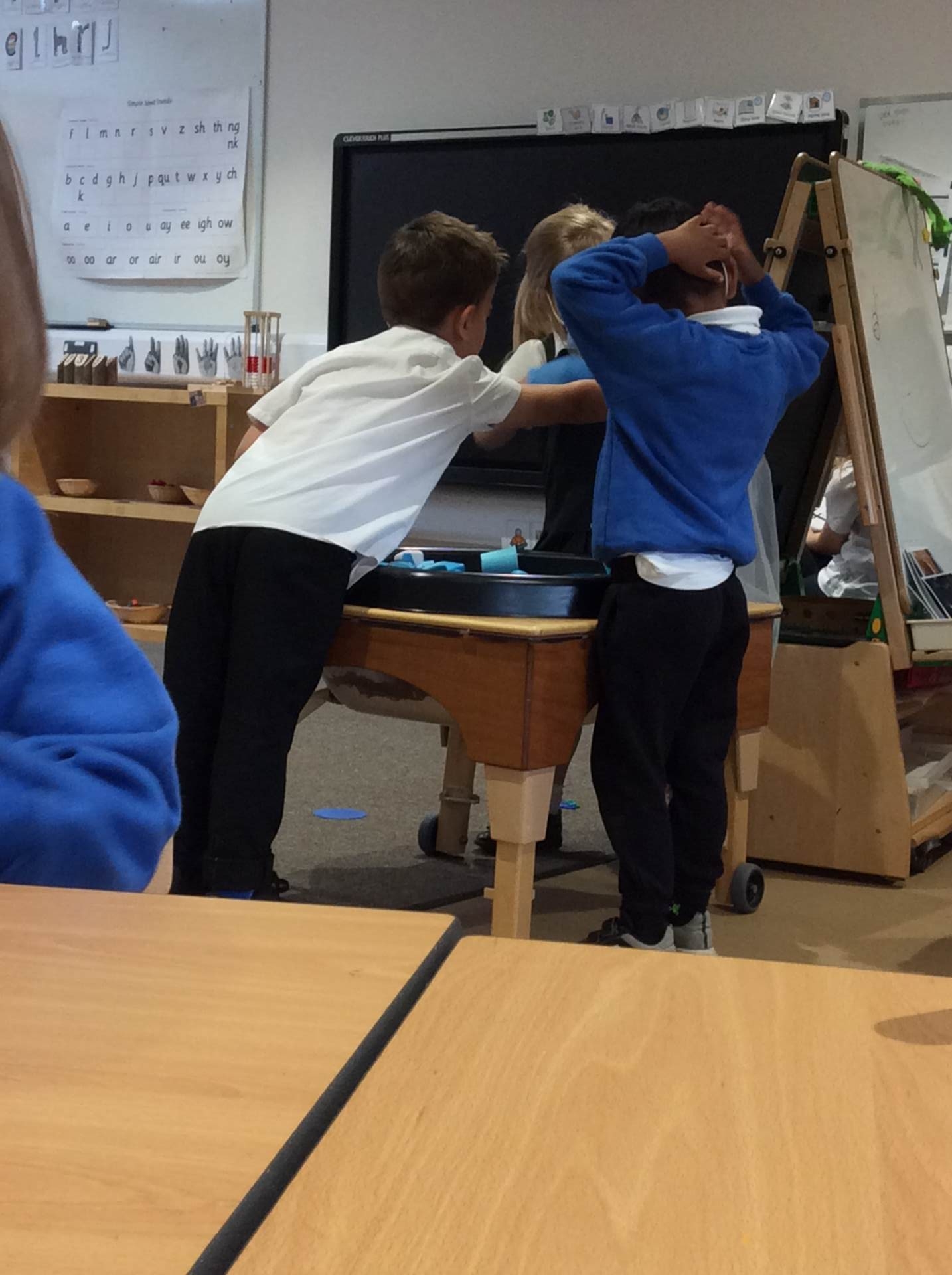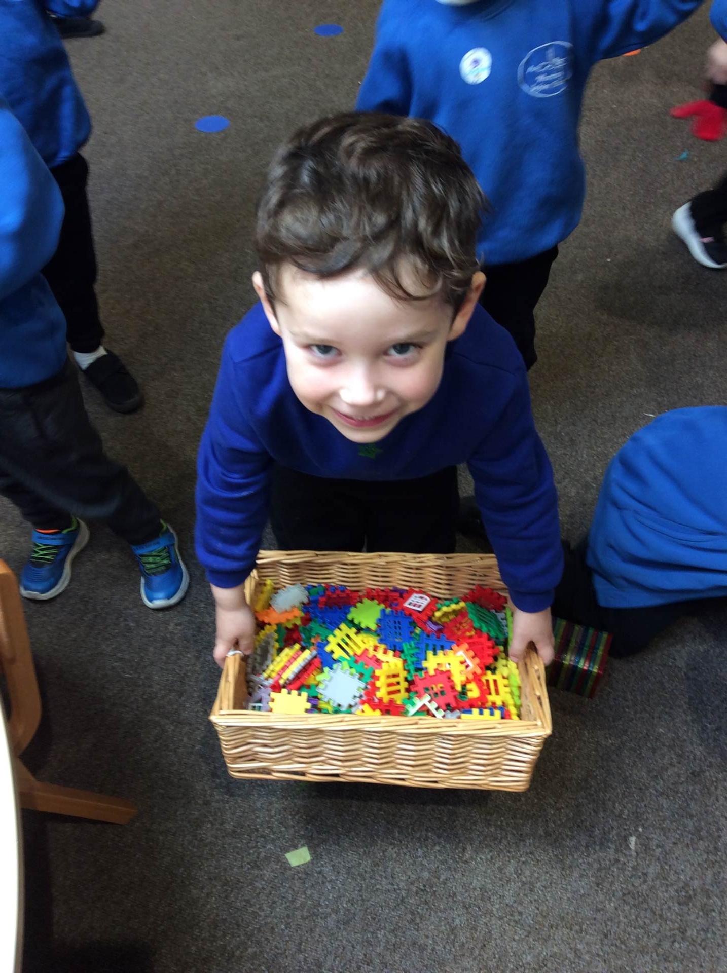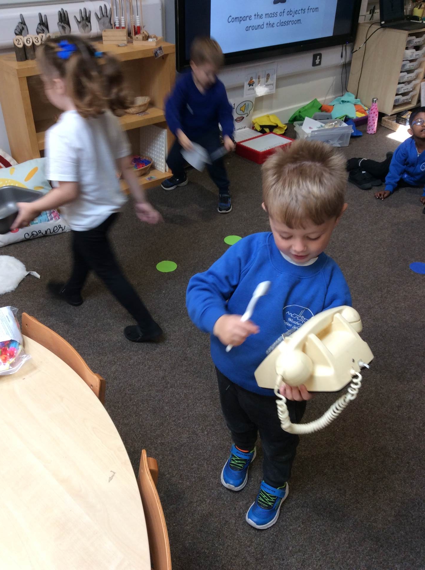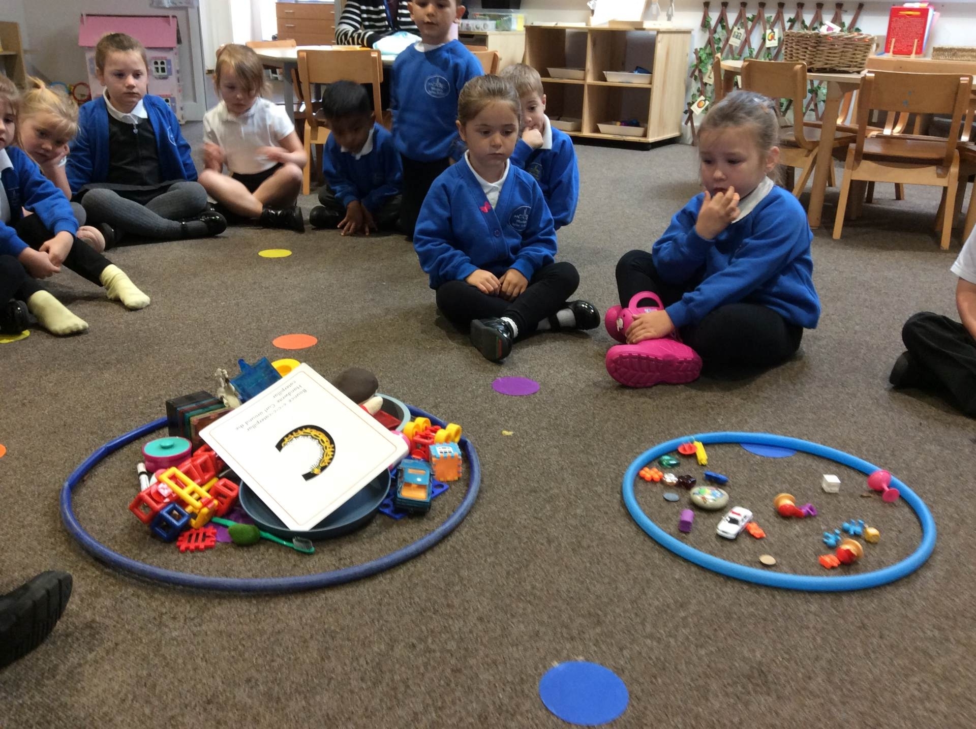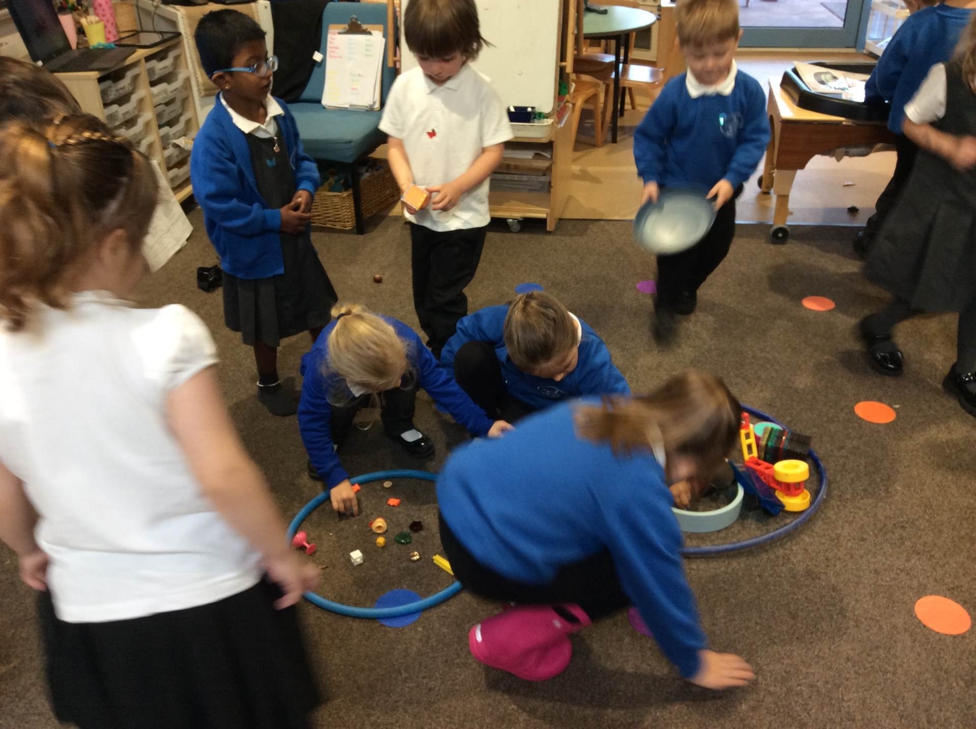 This week for squiggle whilst you wiggle we practised ‘the hump’ which will help when forming letters such as m, n, h, and r. We did this to the song ‘m bop’ by Hanson which was so much fun! In maths our focus has been comparing size and mass of different objects around the classroom. We chose objects and placed them into a big hoop or a small hoop depending on their size. This led us in to comparing the weight of different objects and discussing which one is lighter / heavier. We read the story ‘Dear Zoo’ in one of our maths lessons and tried to guess what animal might be in each box, depending on its size. We then looked at a mystery box and predicted what might be inside before thinking about what else we could fit into it.