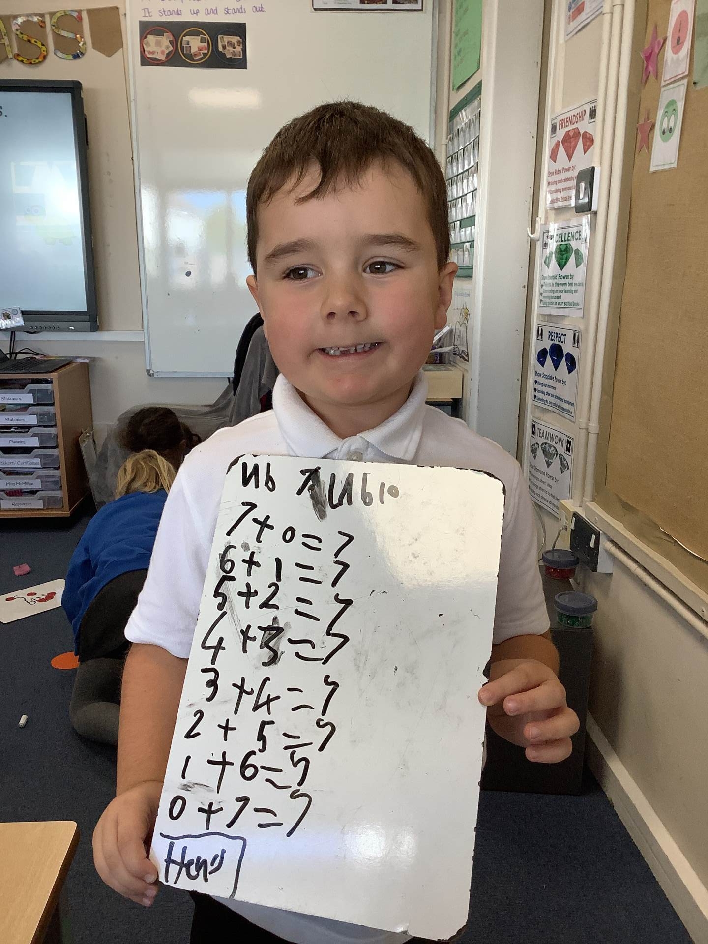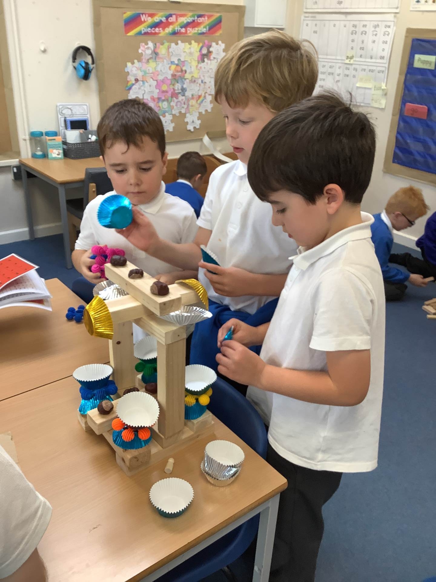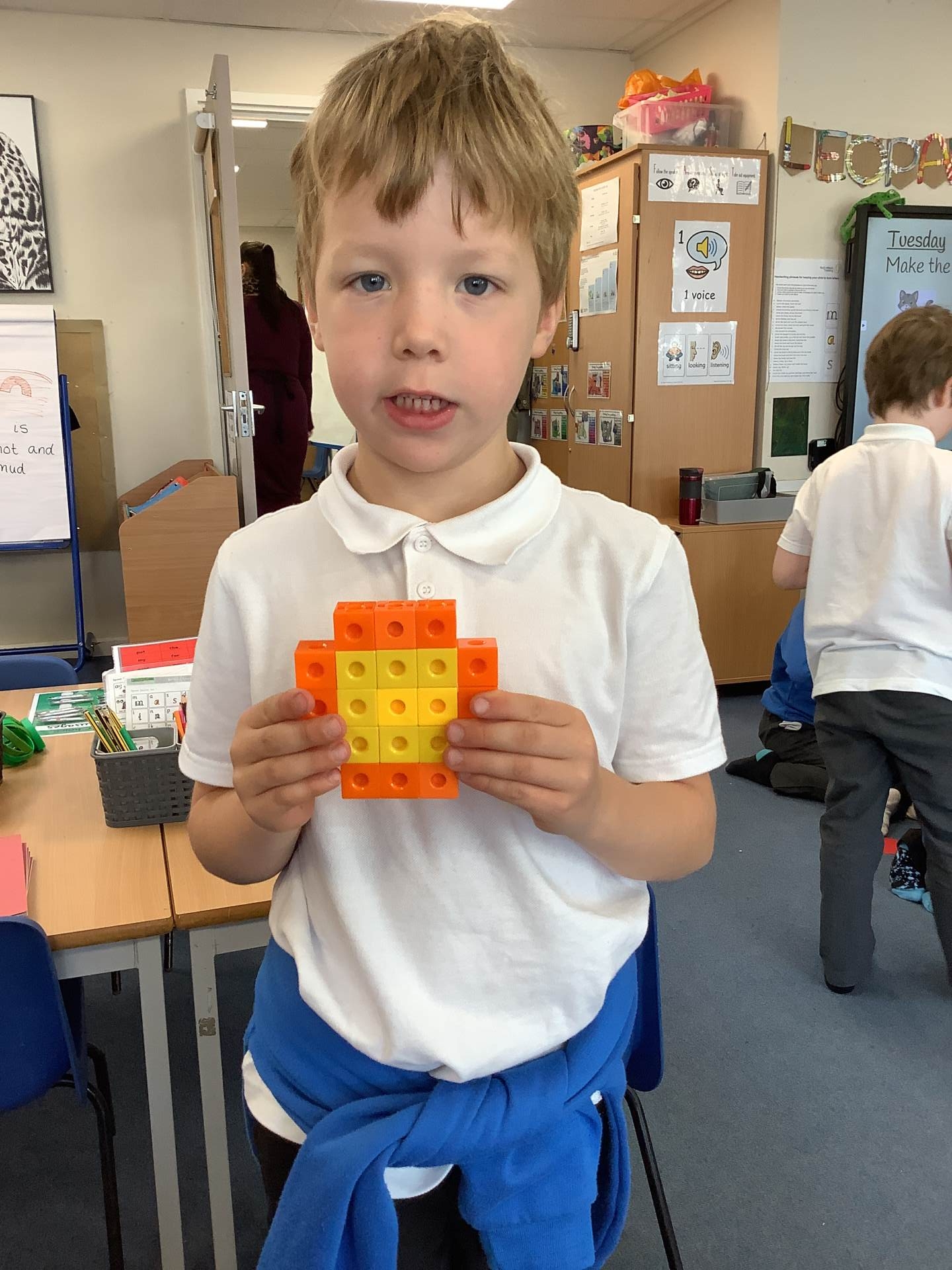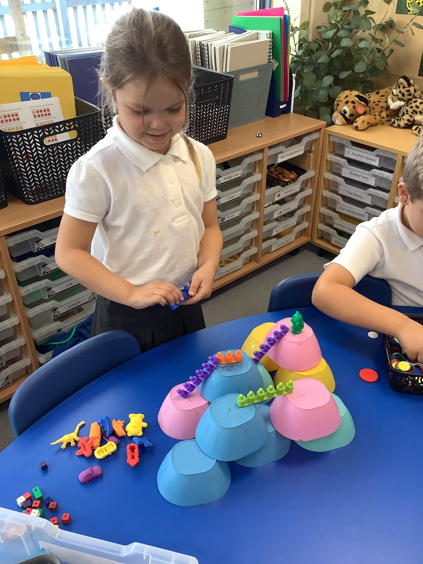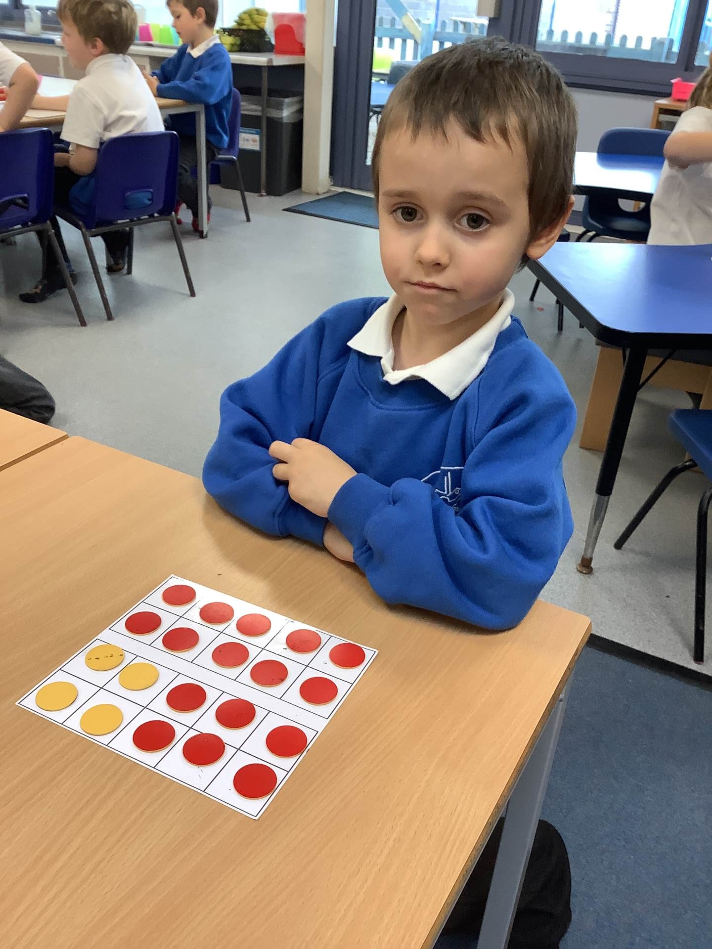 It was all about number bonds in maths. First, we identified the number bonds to 10 before using this knowledge to find the number bonds to 20. We used the tens frames, part- whole models and counters to help us find all of the number bonds systematically.
