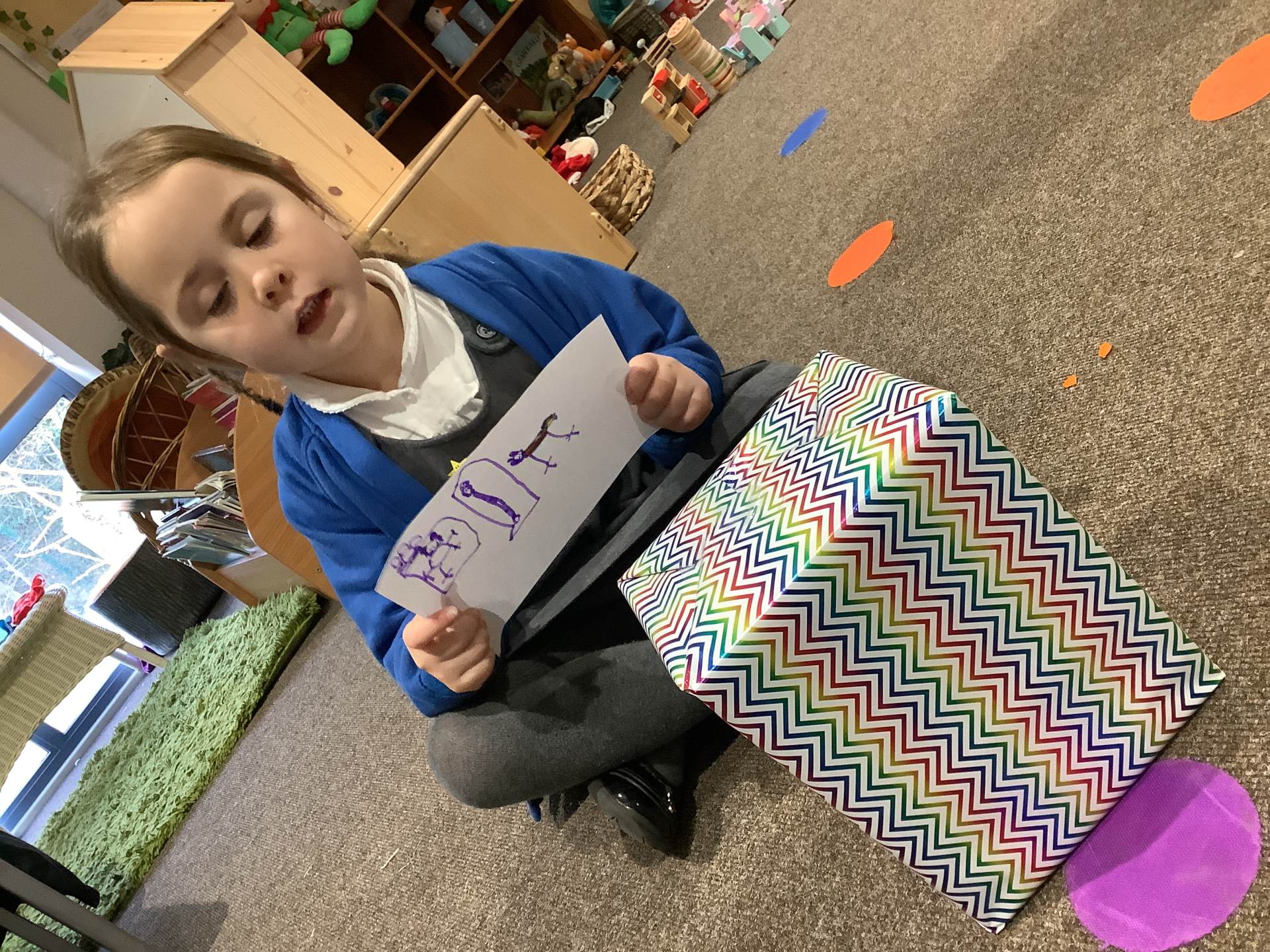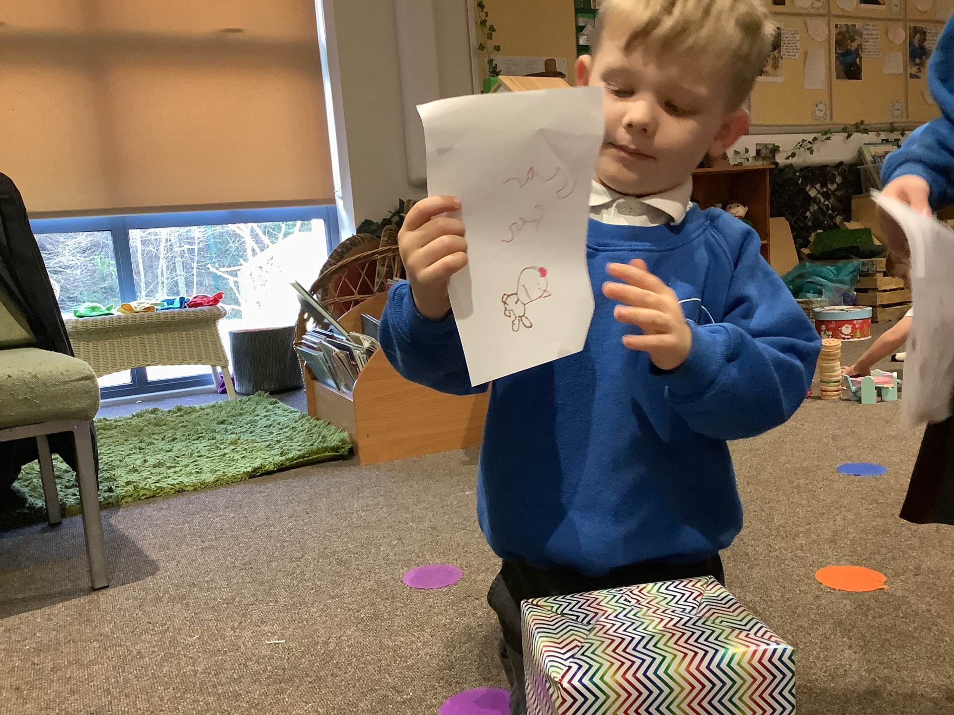 The children have had a wonderful time taking part in some exciting Message Centre activities over the past week. After enjoying the story The Jolly Christmas Postman, they decided they wanted to create their own mail for the Jolly Postman and eagerly set to work making cards and messages. Later in the week, we shared the story Dear Santa, which led to a very special surprise—a mysterious parcel delivered straight to our classroom! The children had great fun guessing what might be inside, sharing lots of imaginative ideas. There were big smiles all around when we discovered it was a brand-new postbox for the class, perfect for sending messages to friends and encouraging even more lovely mark-making and early writing. It’s been a joyful, festive start to our learning!