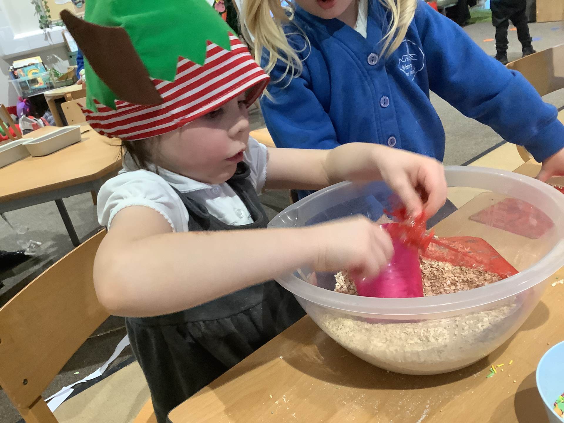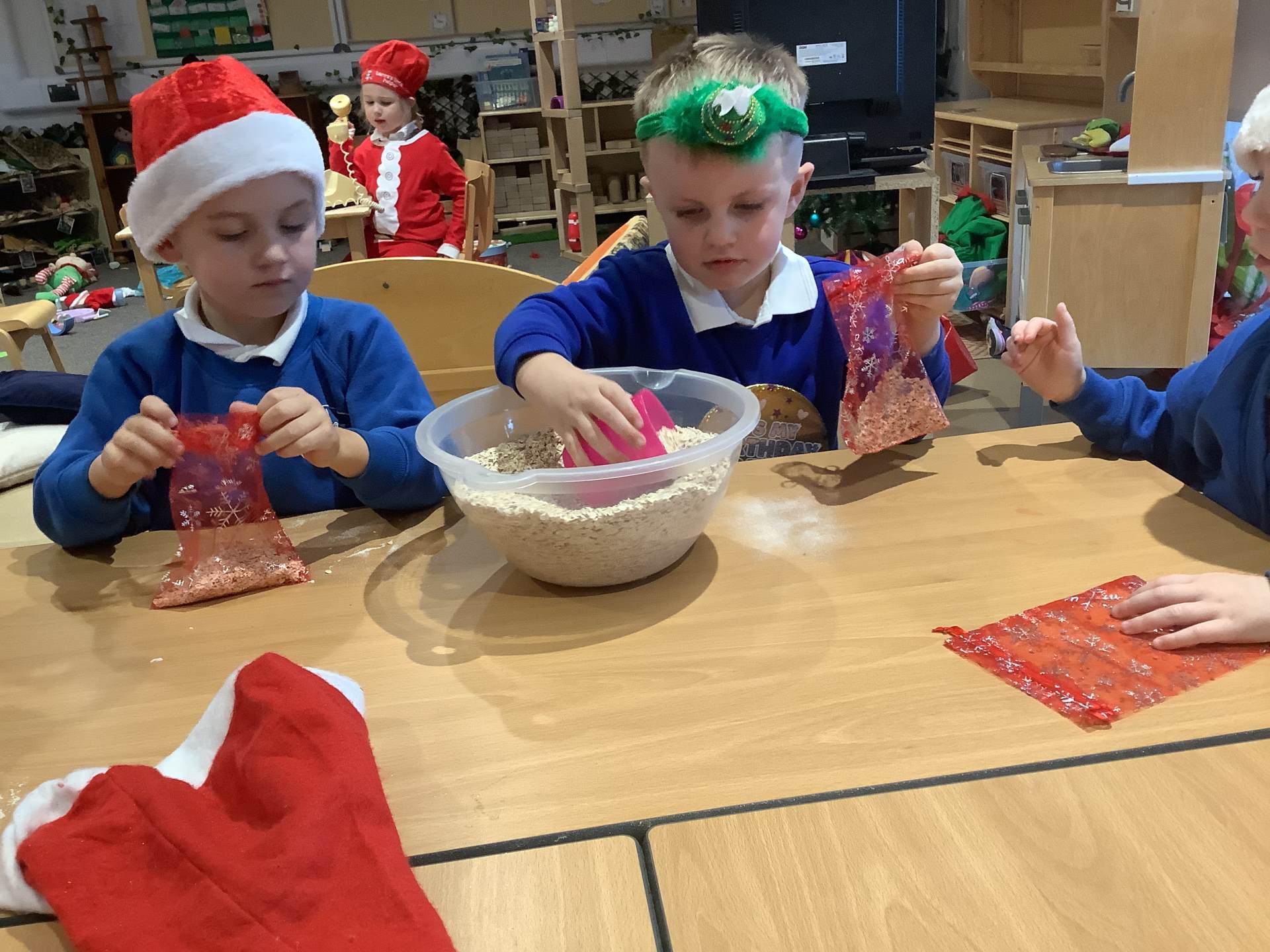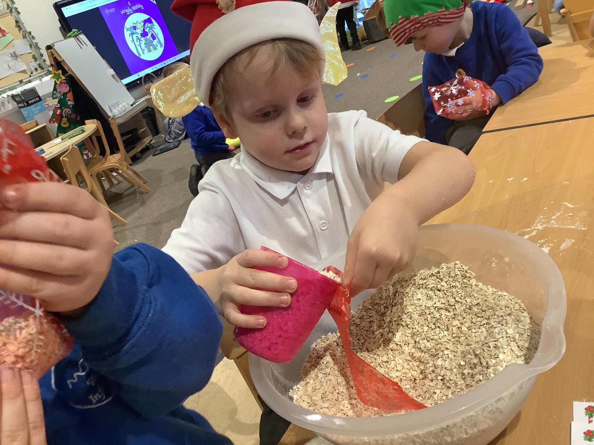 We have really enjoyed learning about Christmas this week and sharing our own experiences and family traditions. The children have continued to learn about the Nativity story and have spent lots of time practising their lines, songs, and actions for our nativity performance, showing wonderful confidence and excitement. We’ve also been busy creating festive crafts, such as decorating our own log slice baubles as either a reindeer or a snowman. One of the highlights this week was making reindeer food for Christmas Eve, and the children loved making a special Christmas wish as they mixed their ingredients together.