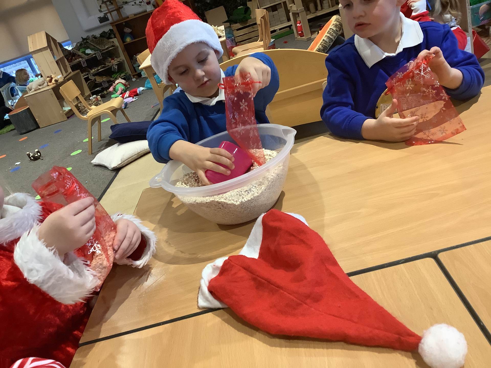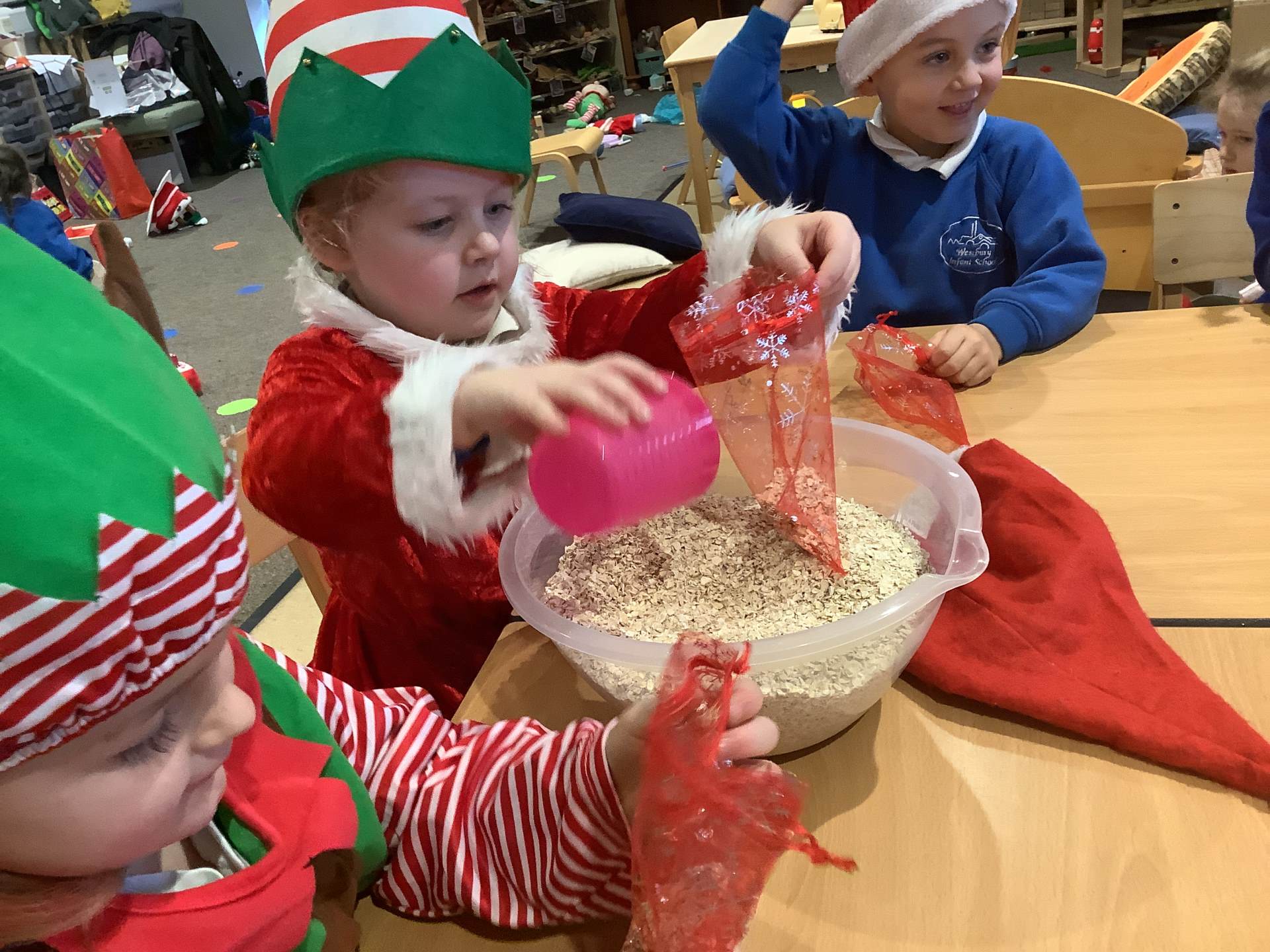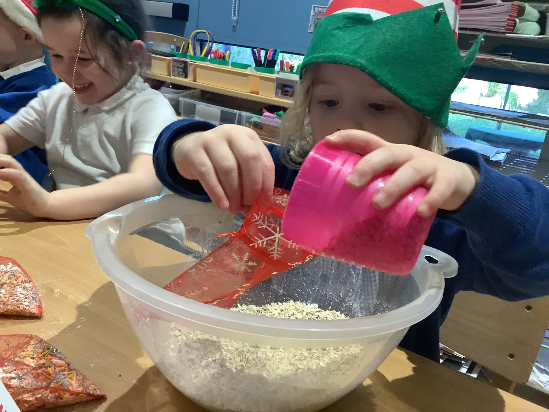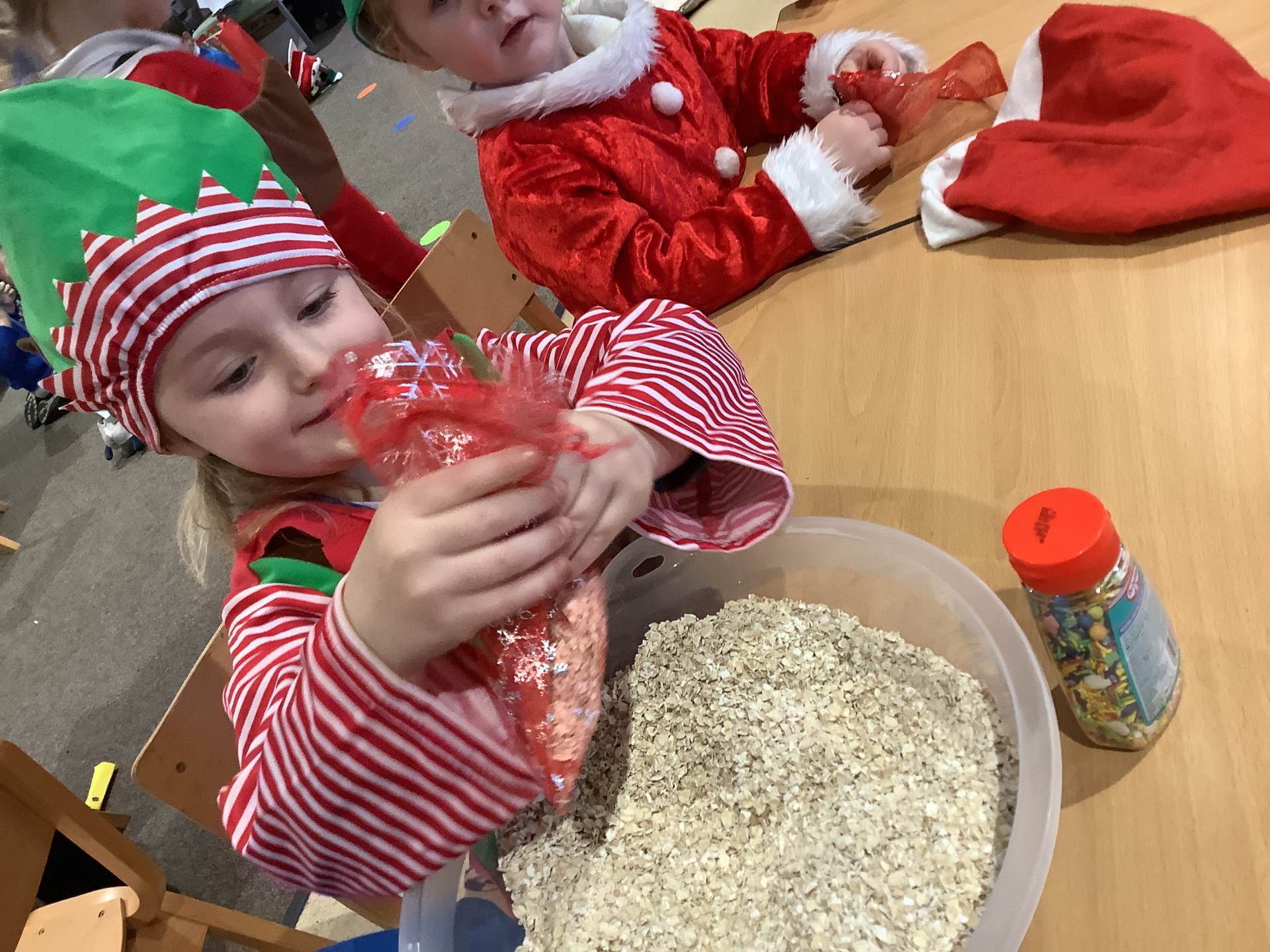 We have really enjoyed learning about Christmas this week and sharing our own experiences and family traditions. The children have continued to learn about the Nativity story and have spent lots of time practising their lines, songs, and actions for our nativity performance, showing wonderful confidence and excitement. We’ve also been busy creating festive crafts, such as decorating our own log slice baubles as either a reindeer or a snowman. One of the highlights this week was making reindeer food for Christmas Eve, and the children loved making a special Christmas wish as they mixed their ingredients together.
