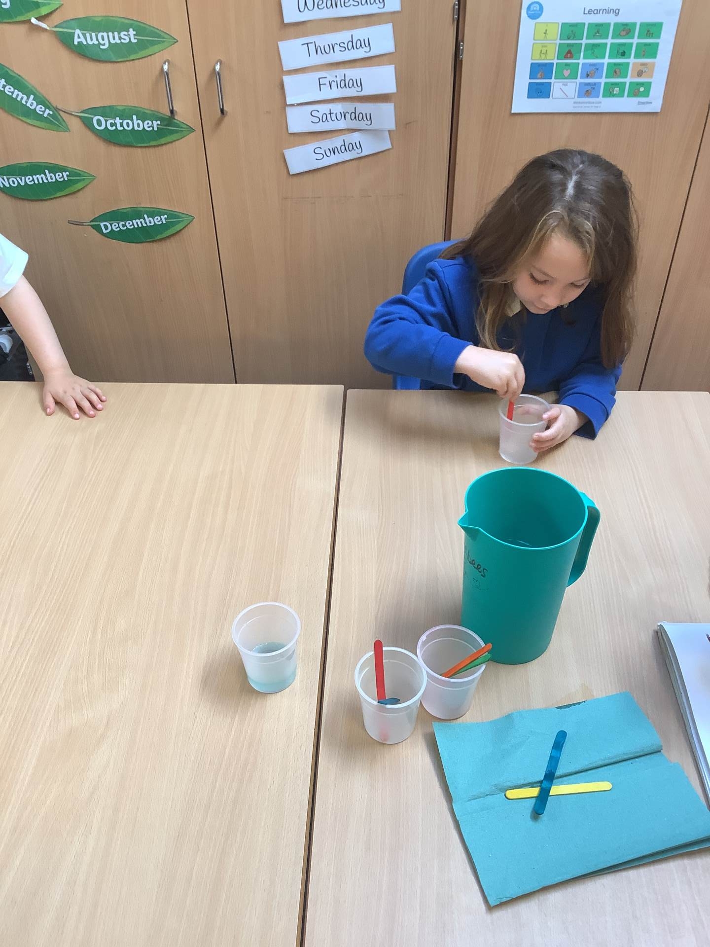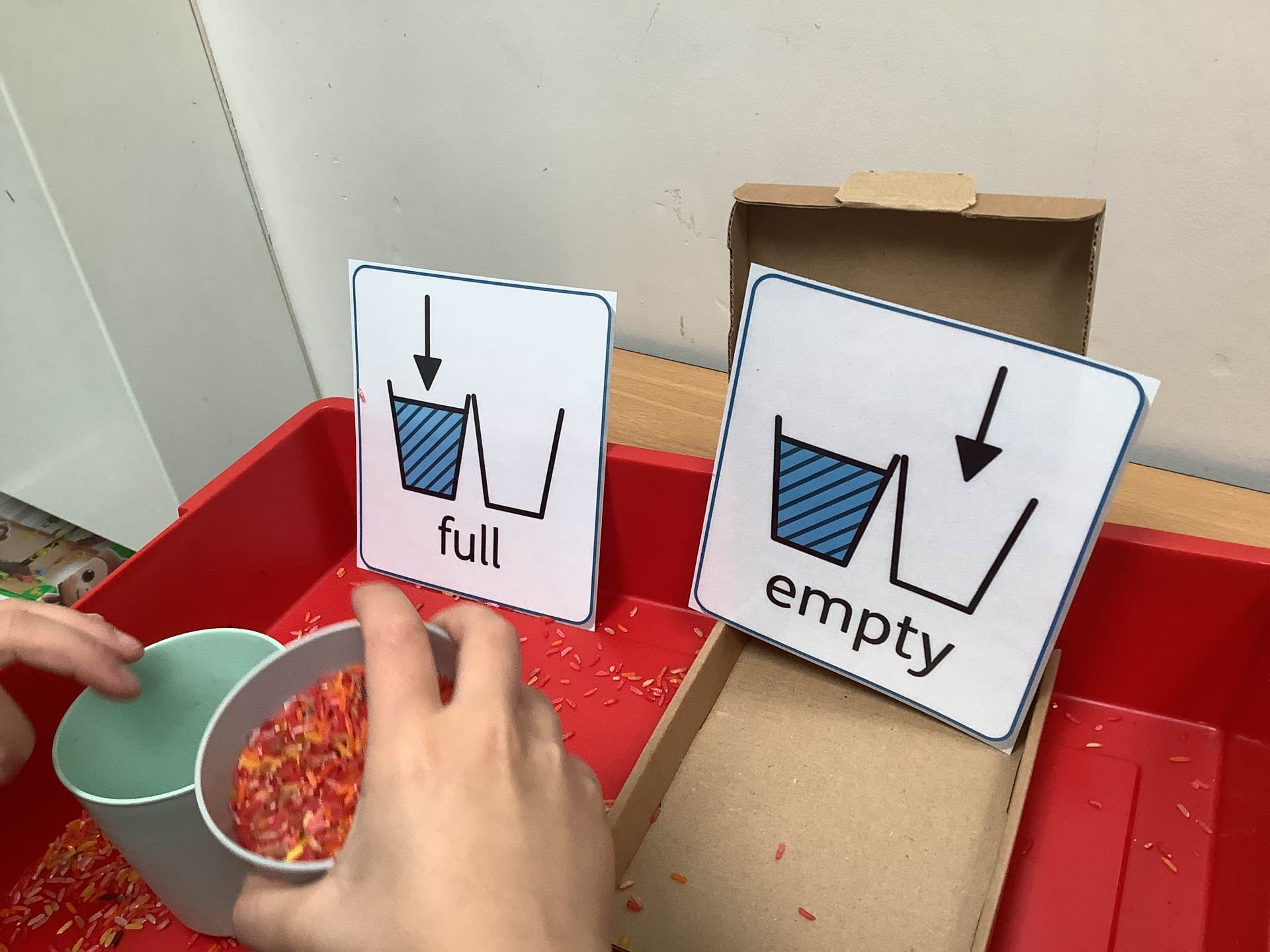 The rest of the class has been exploring measures, using language such as big and small, long and short, heavy and light, and full and empty to compare and describe different objects.