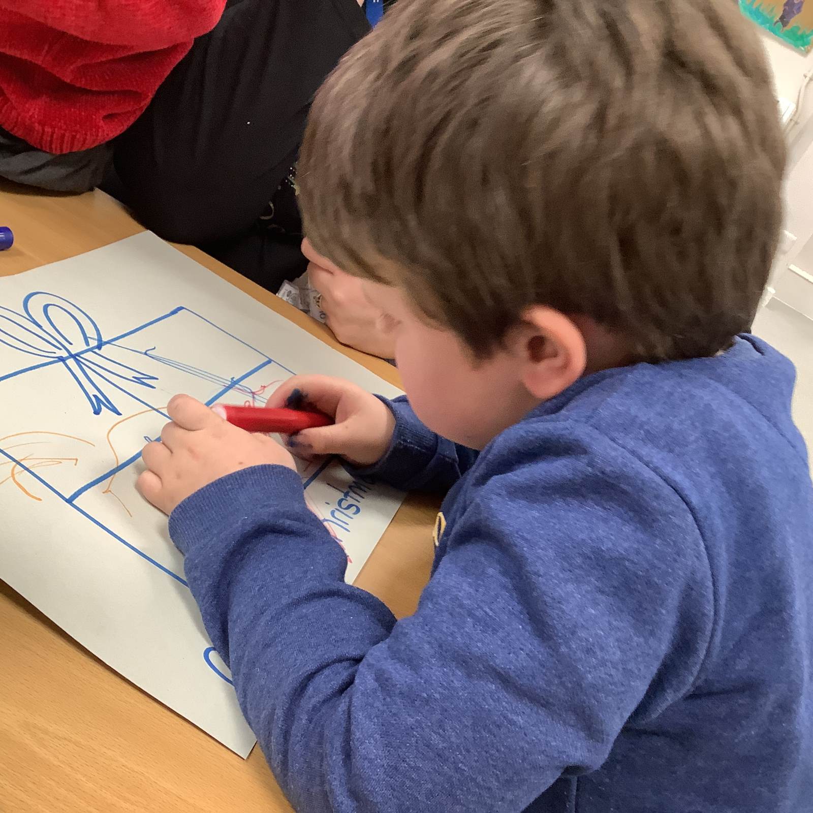 On Tuesday, we wore our Christmas jumpers to school and enjoyed a delicious Christmas dinner. We made Santa placemats and used them at lunch time. Afterwards, we had a fun Christmas party with the Bumblebee class.