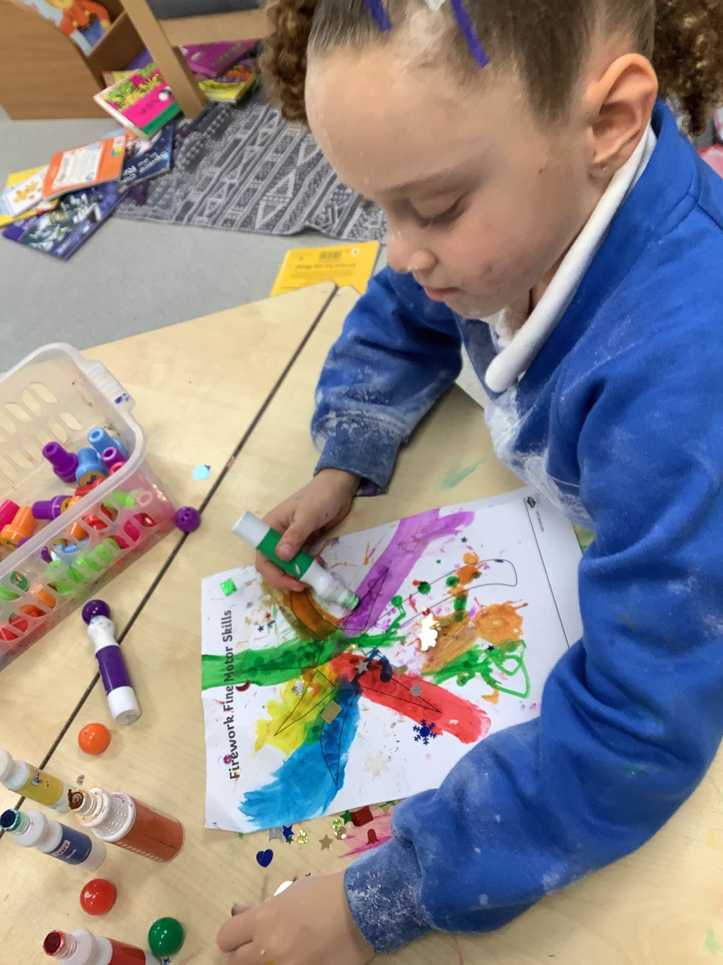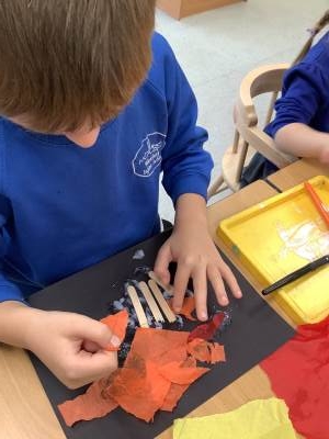 Honeybee Class kicked off the week with a spark as the children immersed themselves in a firework sensory story. They listened to the exciting sounds of fireworks, watched colourful lights flash before them, smelt wood burning, crunched through autumnal leaves, and marvelled at bursts of colour dancing before their eyes.