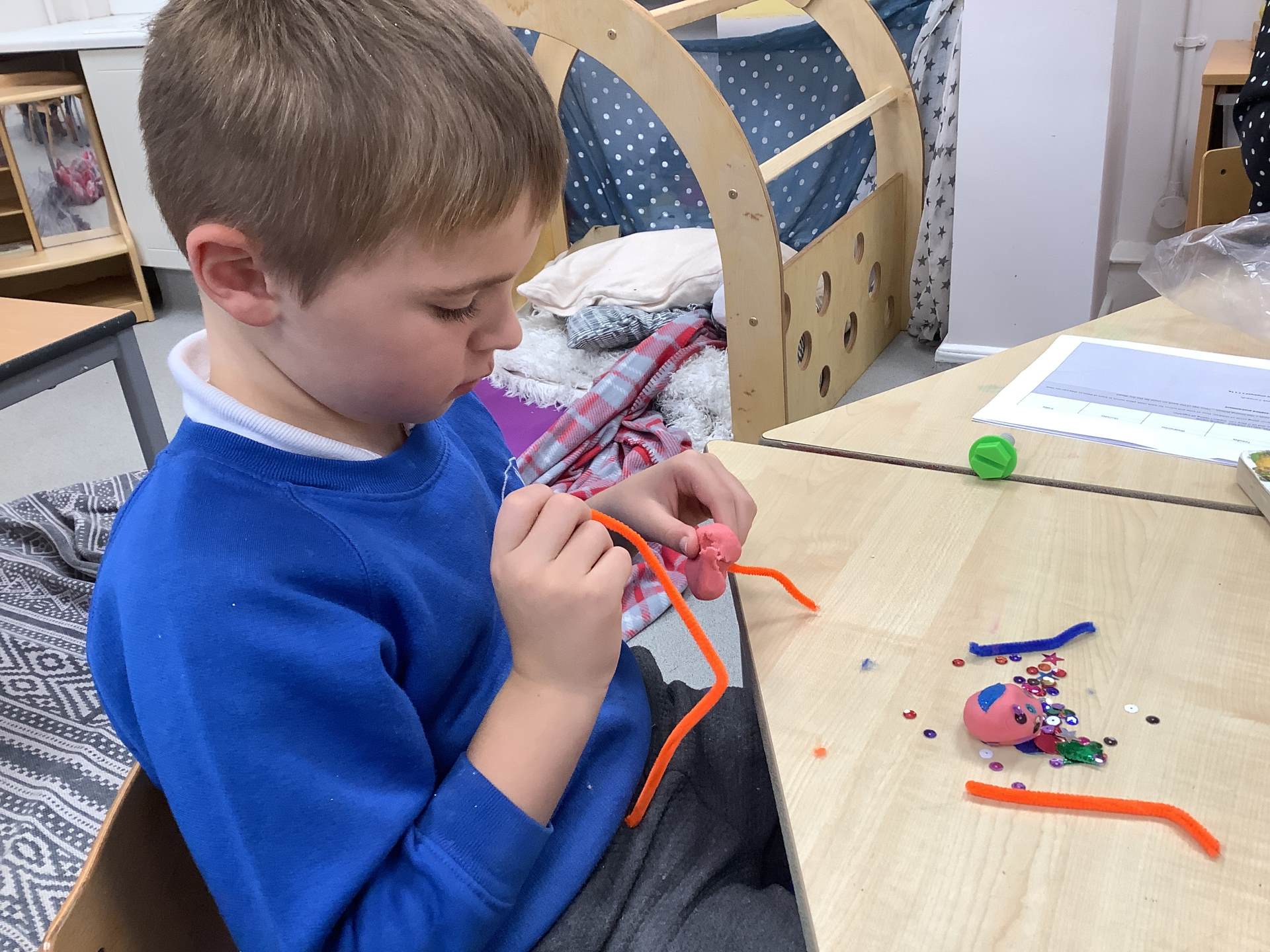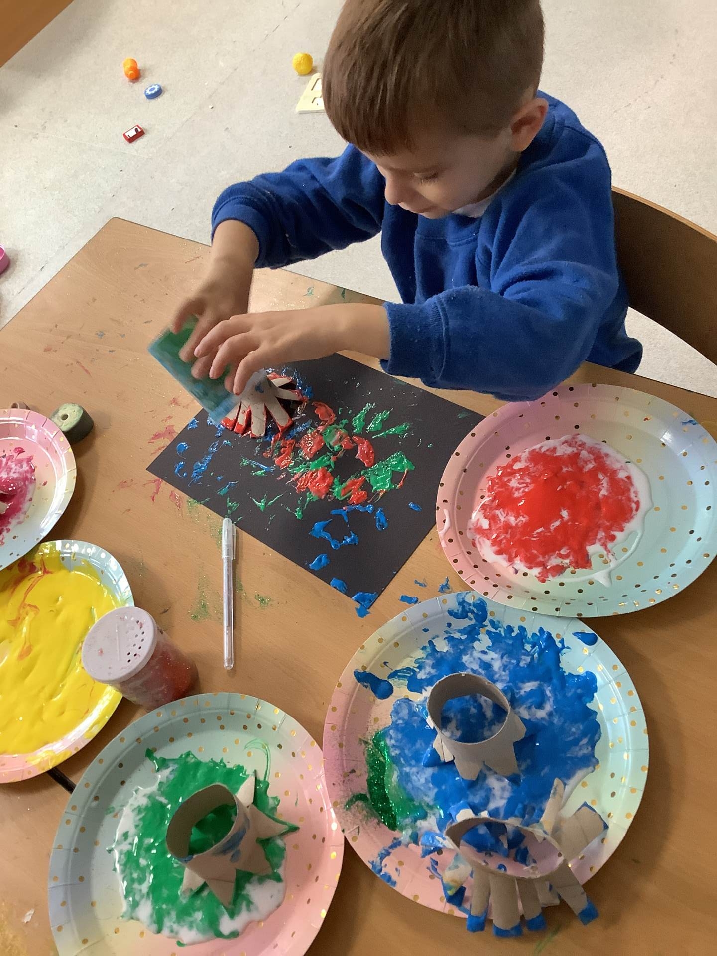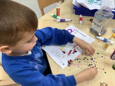 Our exploration of Bonfire Night continued as we created our very own beautiful firework pictures and bonfire collages. The children also made their own sparkly, prickly playdough — a fantastic (and fun!) way to strengthen fine motor skills and develop listening skills. Lots of fun was had by all!