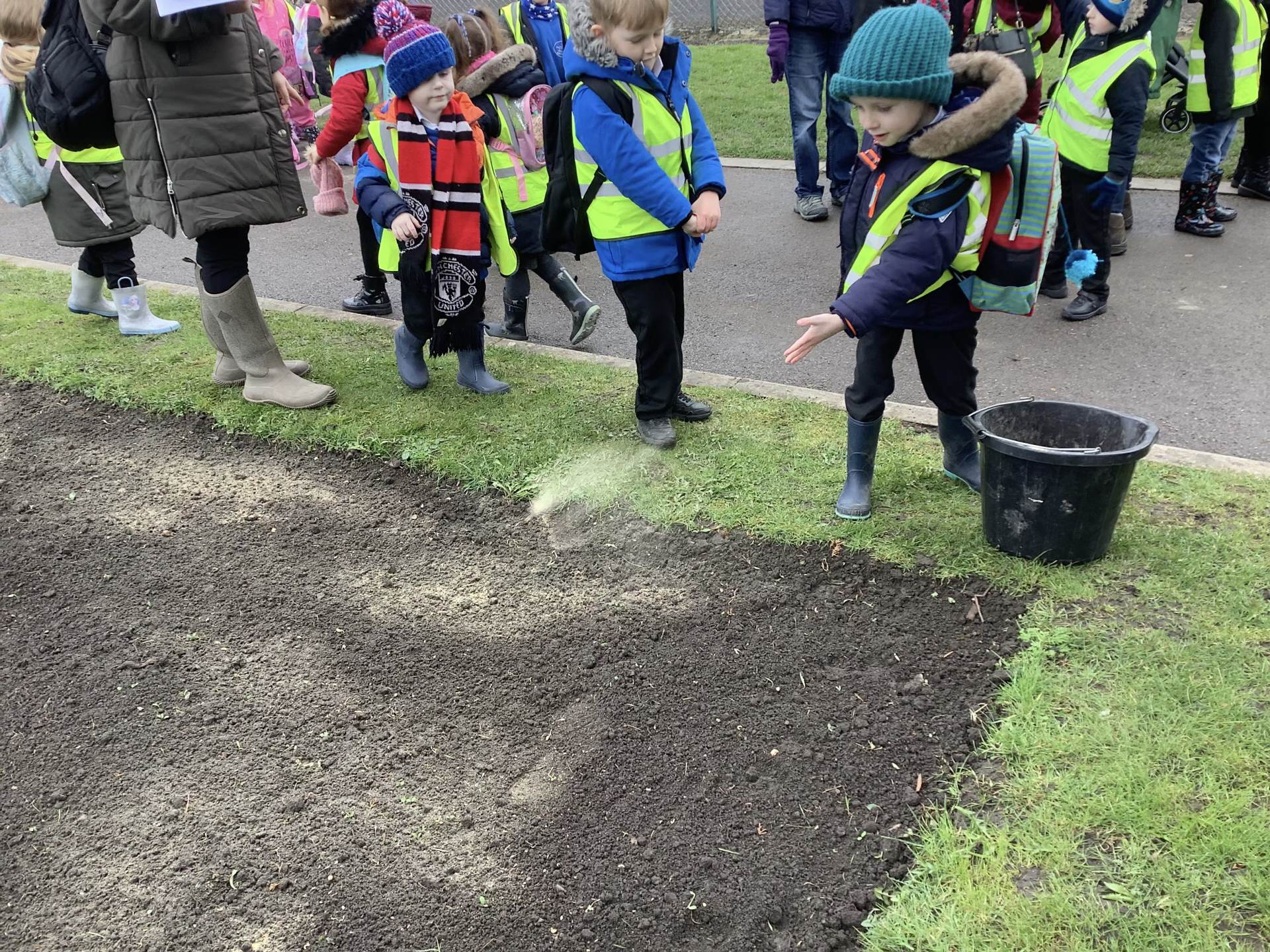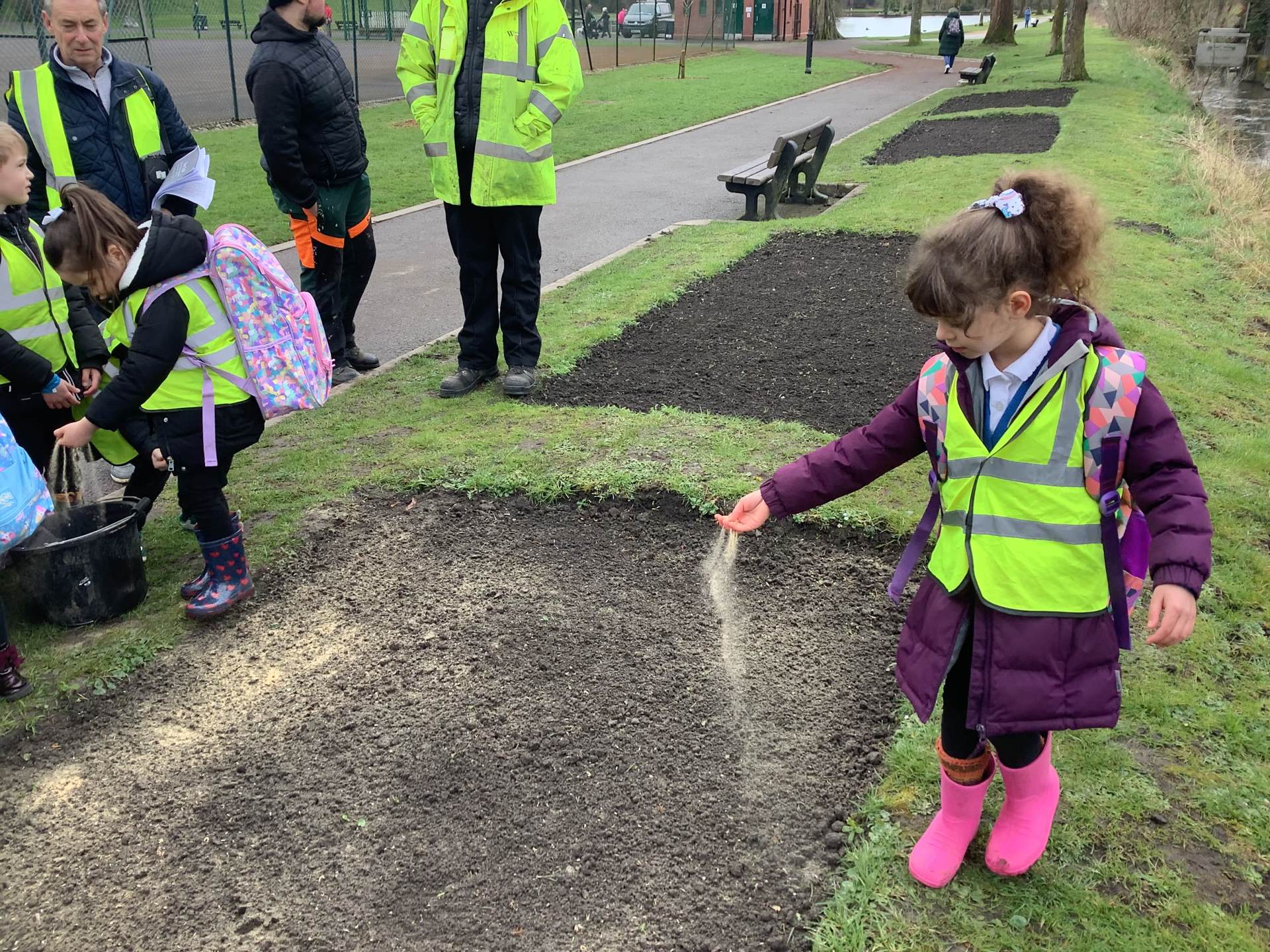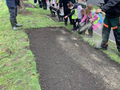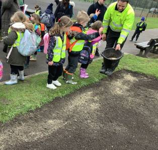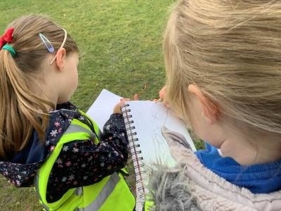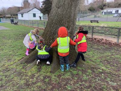 We had a great trip to Warminster Park this week. The children loved going on the train and looking through the window at the passing scenery. Once we arrived at the park we were met by the Park Keeper who showed us how to scatter the wild seeds in the flower beds. There were lots of seeds in the mixture and we all got a chance to scatter some seeds before he then raked it over. If you go to the park in the summer you will have to look out for our beautiful wild seed flower boarder. We then did some observational drawings in the park and played a scavenger hunt game. In their groups the children had to take a picture of the tallest tree, a shiny leaf, a spiky plant and stretch their arms around the biggest trunk.